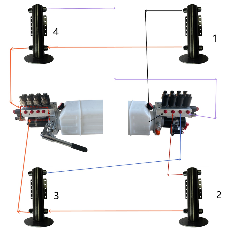 4. Hydraulic power unit installation of one-way check valve, for the vehicle which need long time parking and support , the hydraulic leveling system will ensure the safety and reliable, long-term support .
